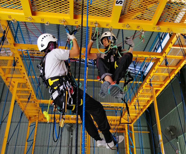 Working at height and Basic Rescue Training are carried out to National Standard and approved by Petronas Carigali Sdn. Bhd